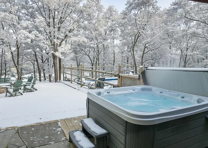 Located 4.7 km from the Pocono Environmental Education Center, the 3-bedroom Indoor Pool, Ski, Games, Hot Tub, Fireplace, Pets Bushkill villa comes with an infinity swimming pool equipped with a poolside bar.